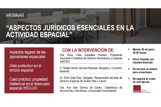 El Bufete Mas y Calvet organiza un webinar sobre los retos jurídicos de la actividad espacial