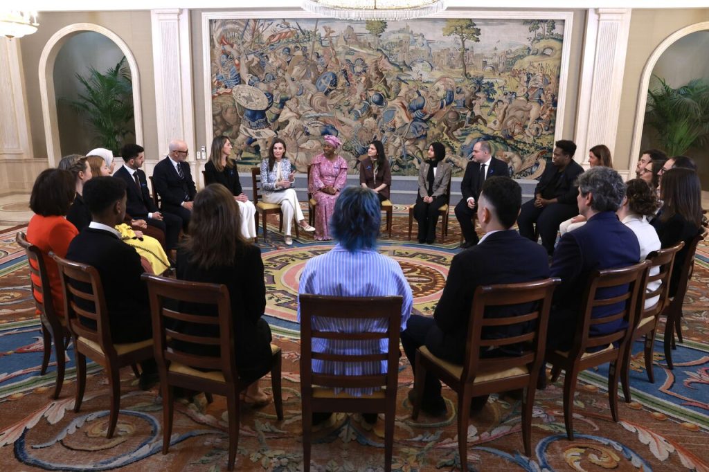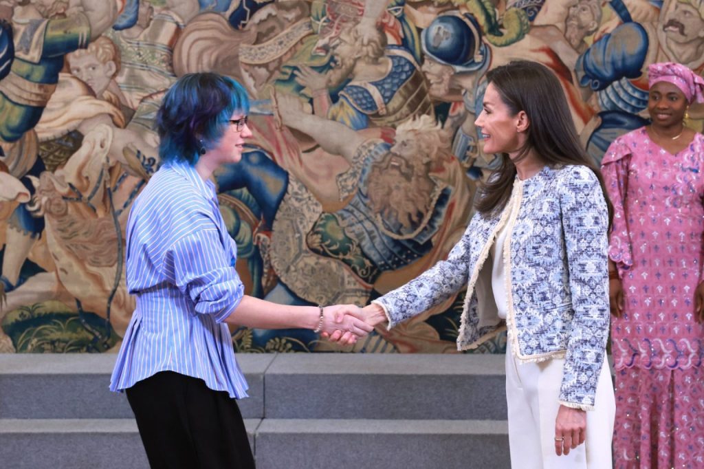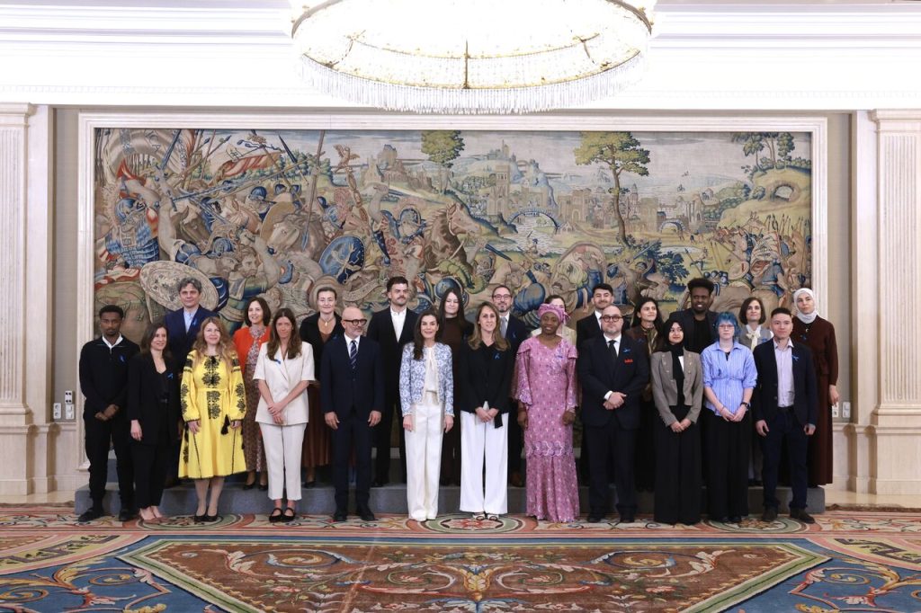 Madrid For Refugees is deeply honored to share that two members of their Madrid For Refugees Code program — Vika and Raúl (standing in the front row, far right) — were invited to join the ACNUR/UNHCR Spain delegation for a private audience with Her Majesty Queen Letizia of Spain, as part of the celebrations marking UNHCR, the UN Refugee Agency’s 75th anniversary.